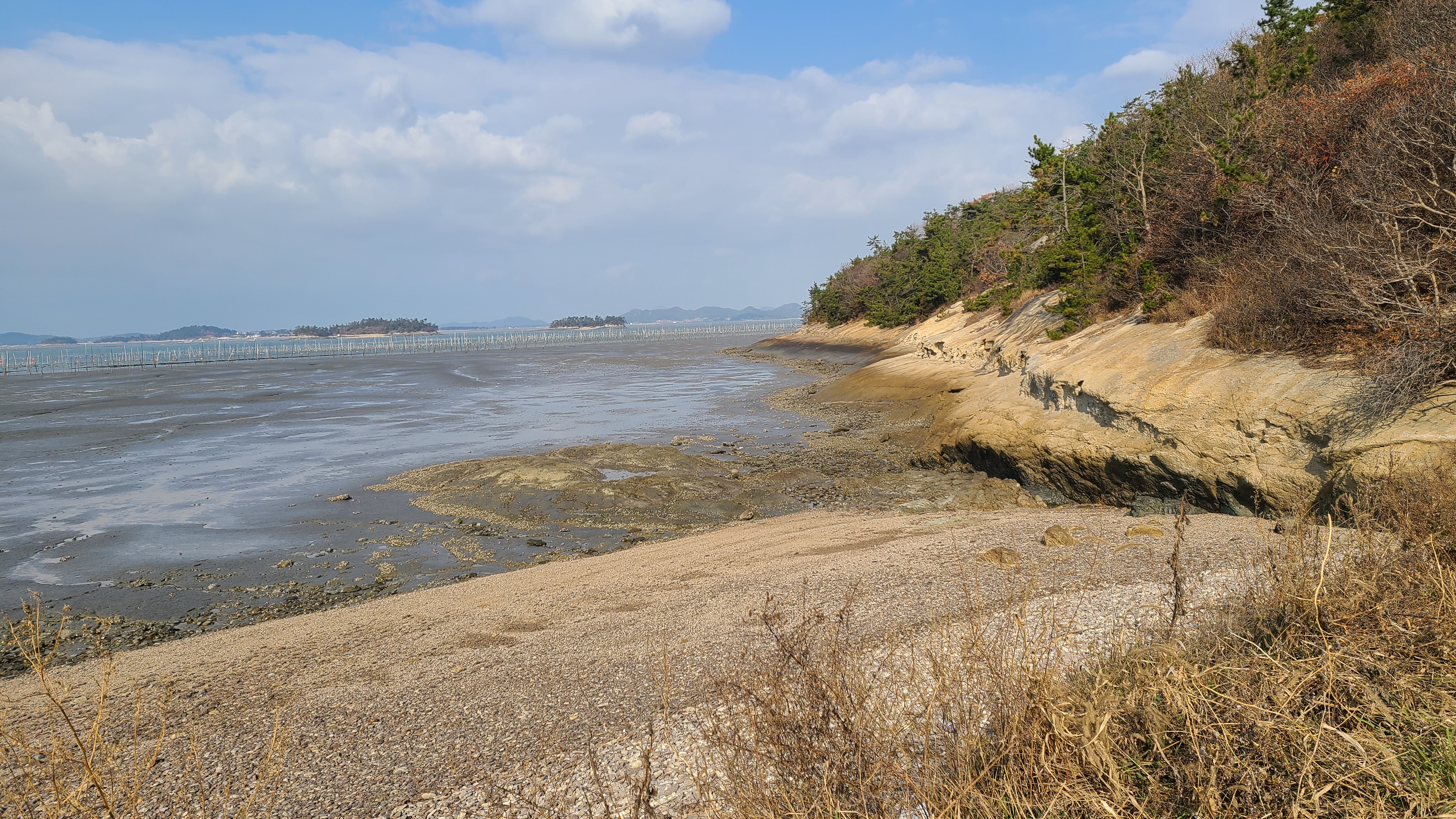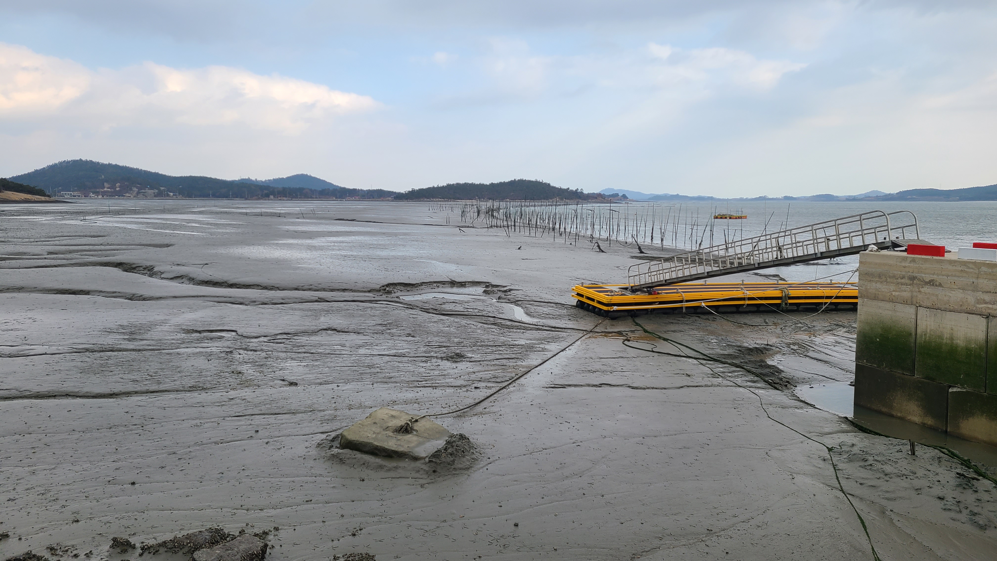썰물이 되어 갯벌이 나타났다.