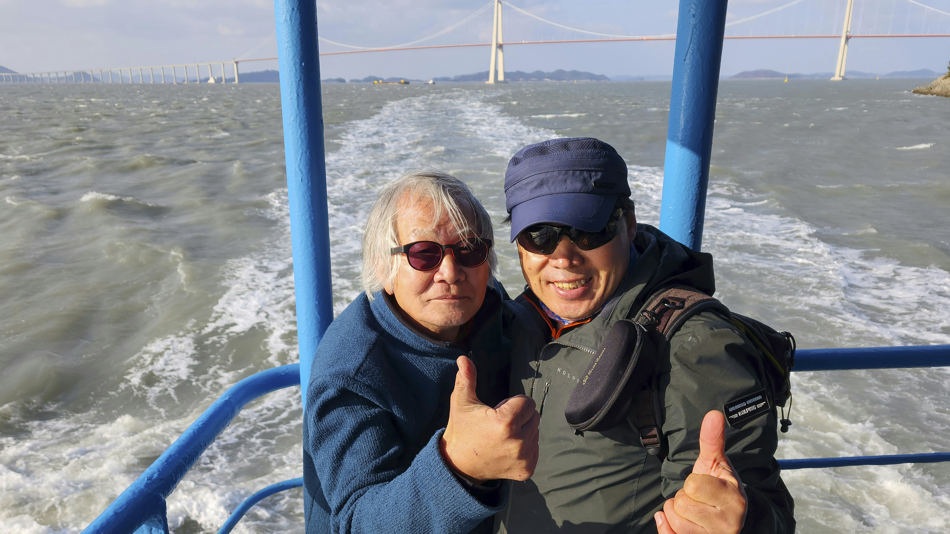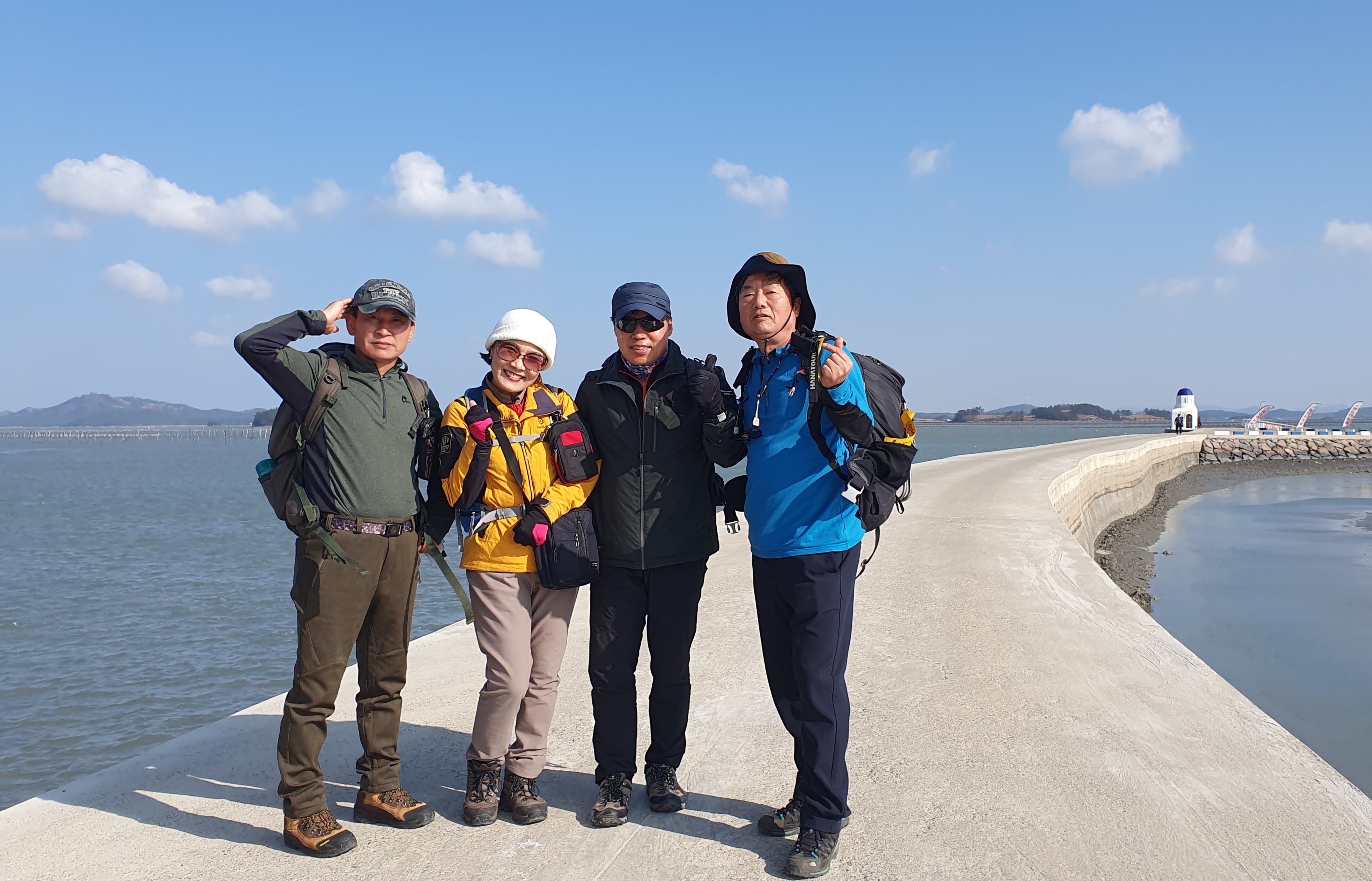 천사대교를 배경으로 단체 사진을 한 방 찍었다.