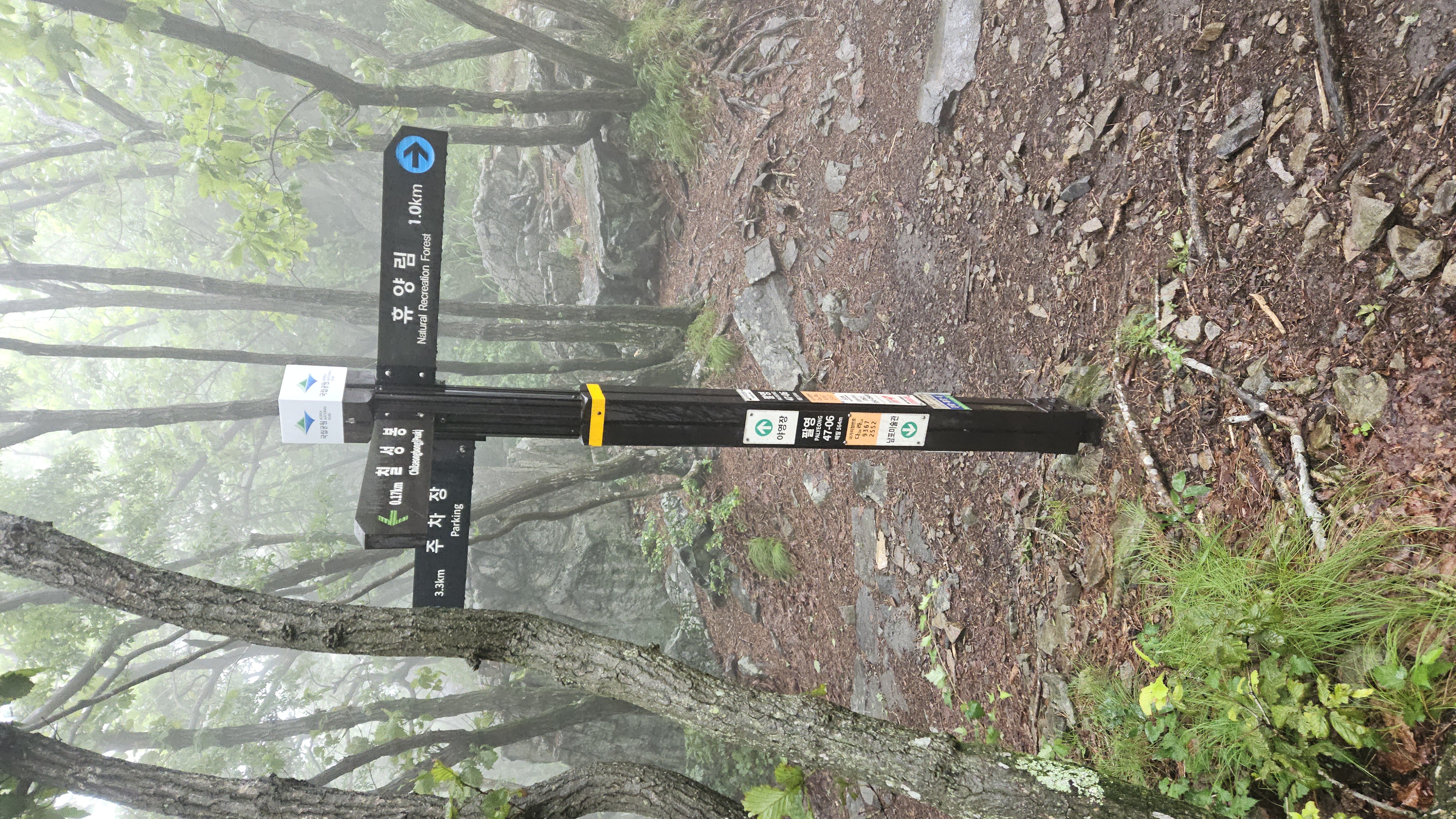 주차장 도착(14:23)..비가 오는 관계로 예상시간보다 1시간이 단축되어 하산이 되었다.