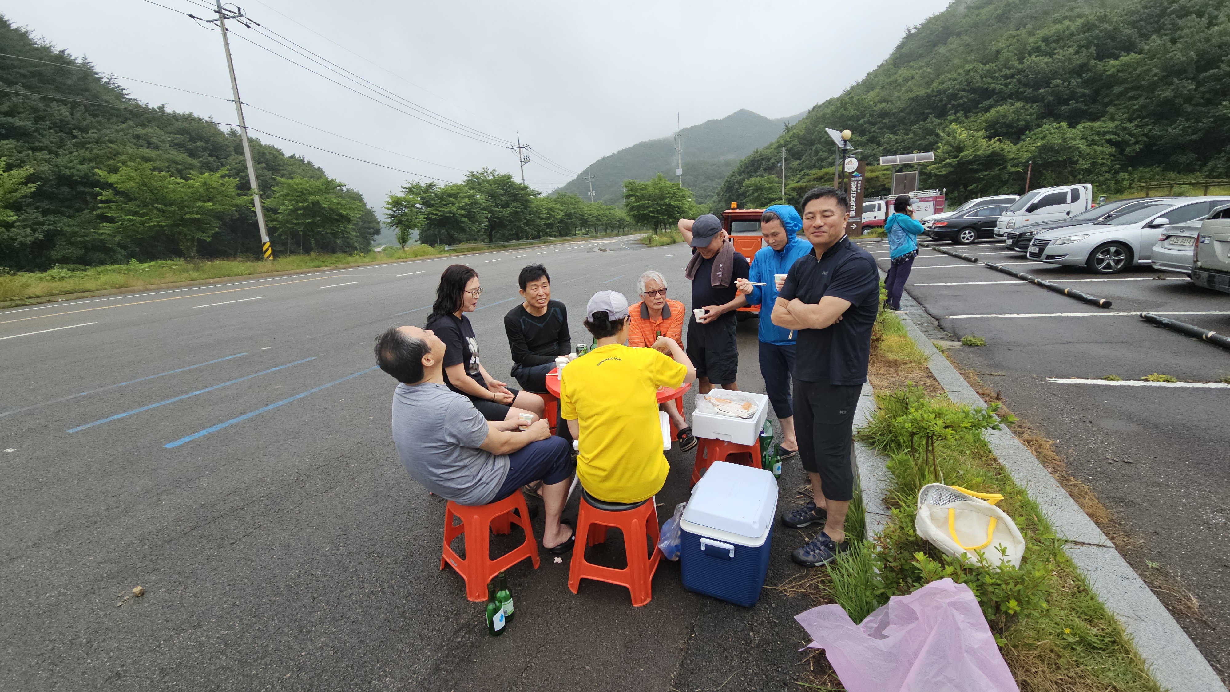 주차장에 도착하니 먼저 내려온 산우님들이 족발에 하산주 한잔씩 하고 있었다.