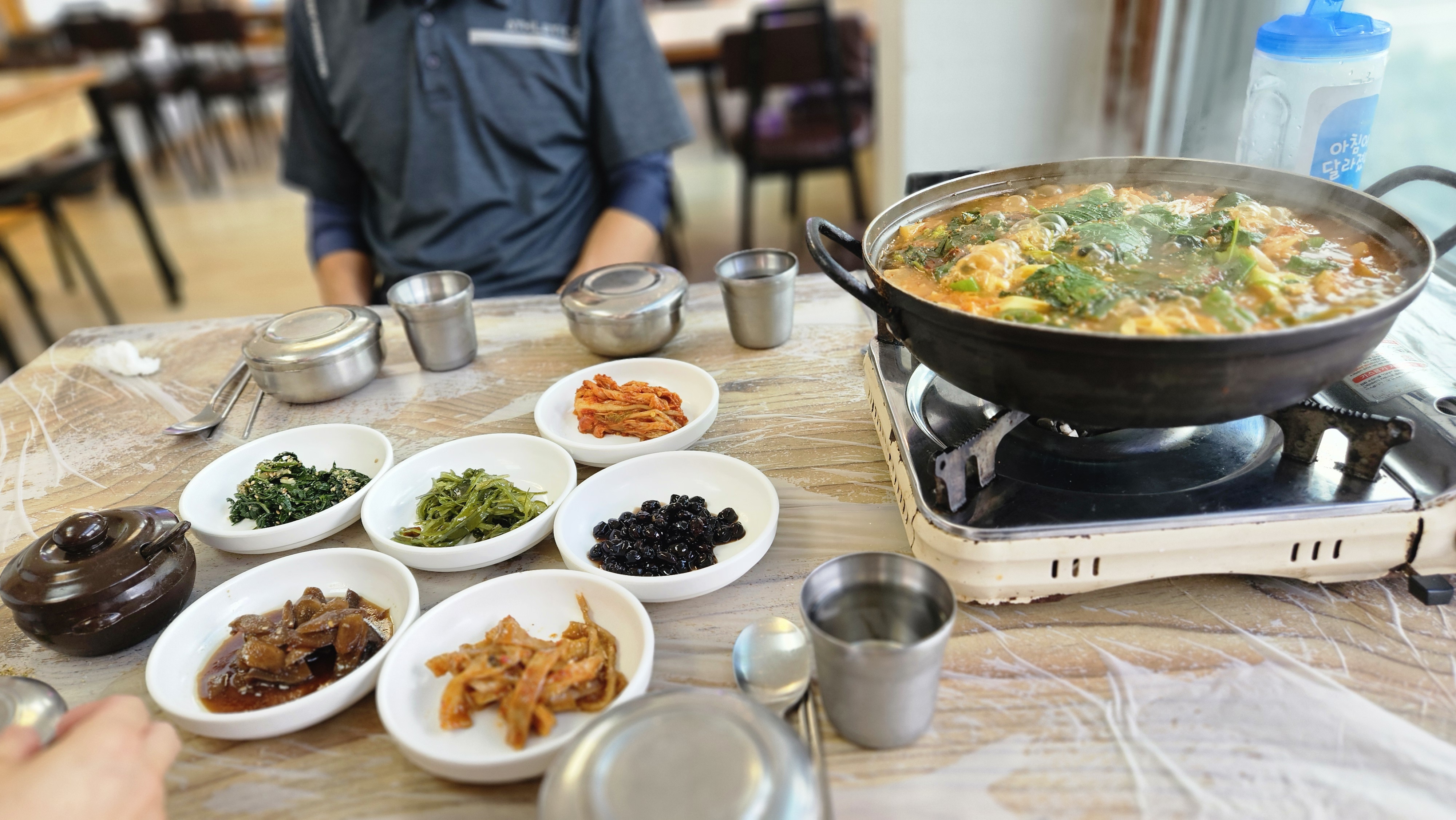 난 옷이 배낭에 있어 화장실에 간단하게 씻고 옷을 갈아 입고~~ 맛있는 매운탕으로 점심을 먹었다.