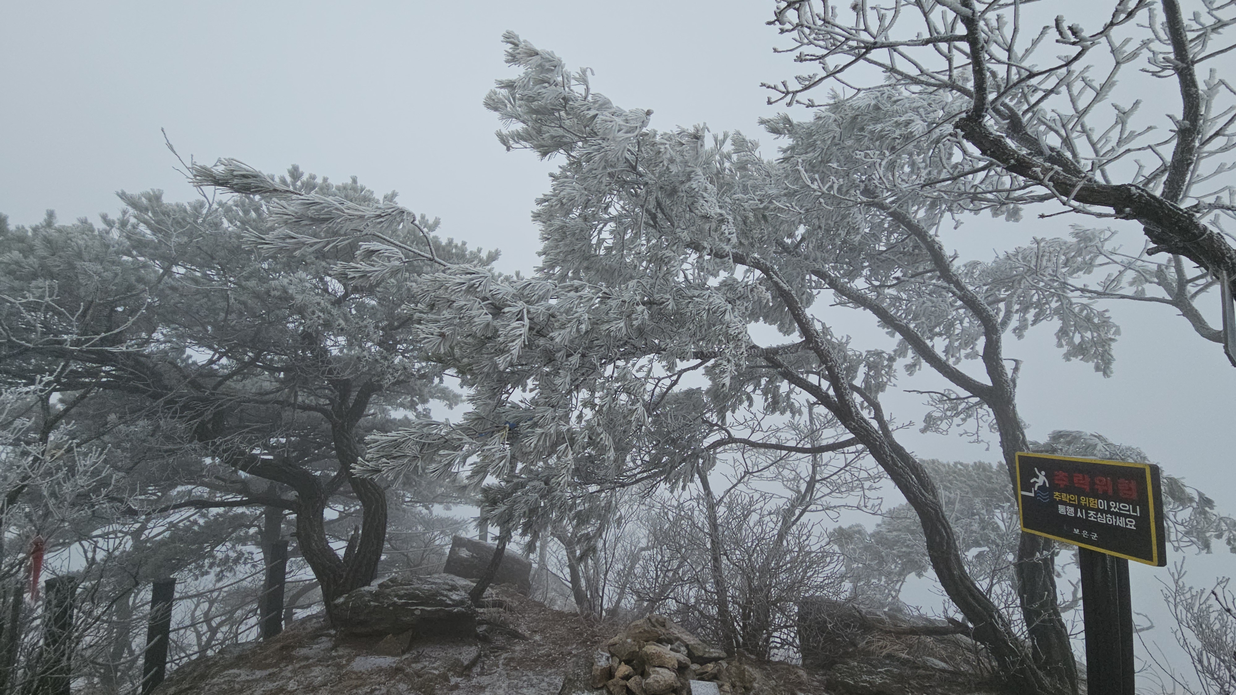 날씨가 흐려 조망은 없지만 상고대가 피어나 나름 멋진 풍경을 보여 준다.